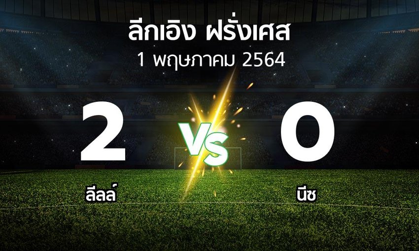 ลลล ตอ 125 -5 สนามแขง. วนเสารท 14 สงหาคม 2564. สรปผลบอล สถตการแขงขนฟตบอล ลกเอง ฝรงเศส ระหวาง ลลล VS นซ แขงขนวนท 14 สงหาคม 2564 เวลา 2200 น.
